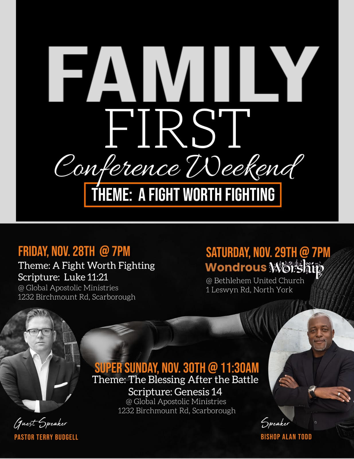 Global Apostolic Ministries is having their weekend of fellowship and the theme is about family.